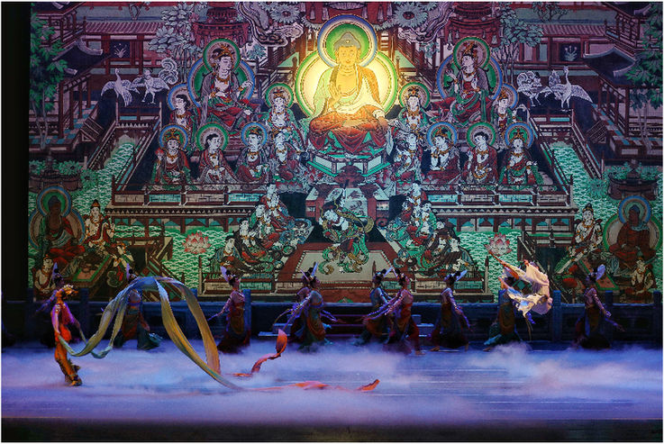 緣起敦煌壁畫,復活千年舞(wu)姿。《絲路(lu)花雨》取材于敦煌莫高窟壁畫藝術,以(yi)和(he)平、友(you)誼為主題,博(bo)采“一帶一路(lu)”沿線國(guo)家和(he)地(di)區(qu)民間(jian)歌舞(wu),自1979年創演以(yi)來,40多年間(jian)始終(zhong)常演常新。