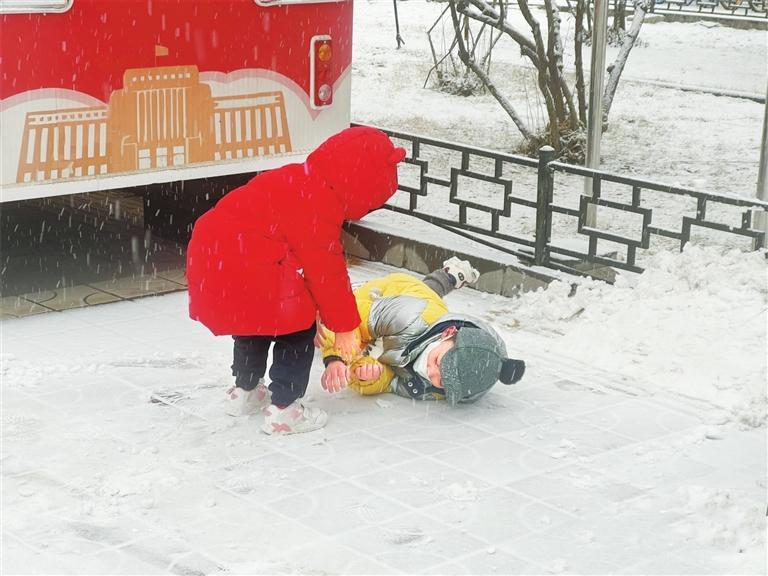 小朋友在雪地里嬉戲。 新甘(gan)肅照片