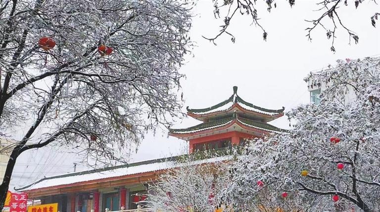 會寧(ning)縣城(cheng),樹葉披上了銀紗。 會寧(ning)縣融(rong)媒體中心照片