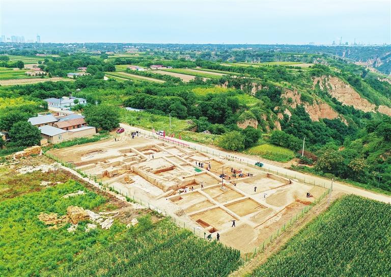 甘肅(su)慶陽市南佐新石器時代遺址(zhi)核(he)心區大型(xing)宮(gong)殿建筑發掘現場(2022年8月23日攝)。