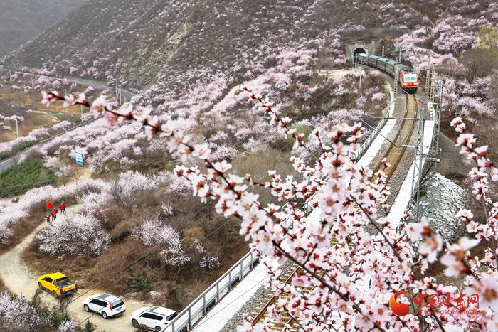陽春三月,桃(tao)之(zhi)夭(yao)夭(yao)。在(zai)崇信縣的(de)漫(man)山遍野上,朵朵桃(tao)花(hua)迎來盛放期。微風吹來,暗香浮動(dong)。近(jin)看(kan),朵朵嬌俏(qiao)的(de)桃(tao)花(hua)層(ceng)層(ceng)疊疊,錯落有致。遠(yuan)看(kan),漫(man)山紅遍如霞似錦,爛漫(man)壯觀。特別是(shi)一(yi)列(lie)列(lie)火車穿(chuan)行(xing)而過(guo),與桃(tao)花(hua)撞了個滿懷(huai),奔向充滿希望的(de)春天。