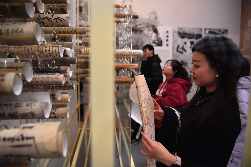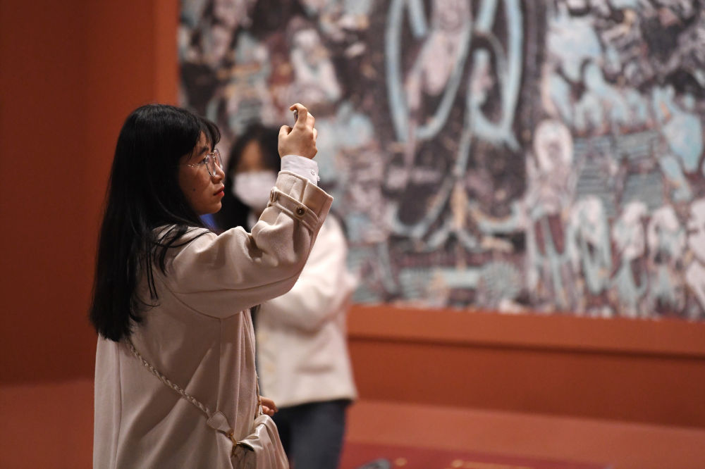 4月5日,觀(guan)眾在敦煌研究(jiu)院蘭(lan)州分(fen)院敦煌藝術館參觀(guan)。新華(hua)社(she)記者 陳斌 攝