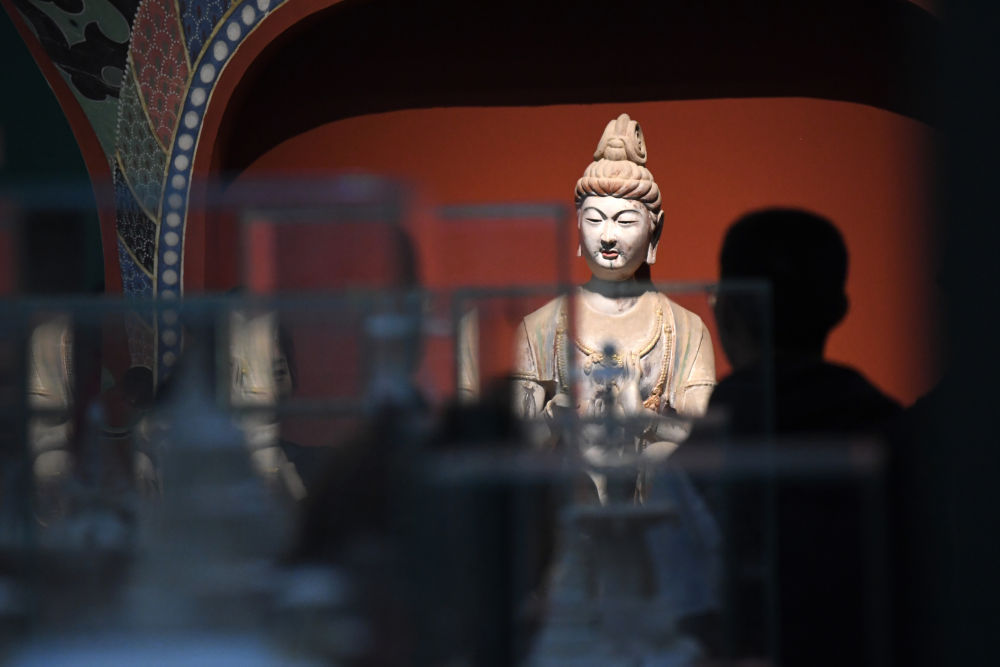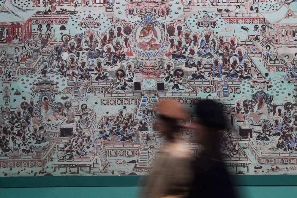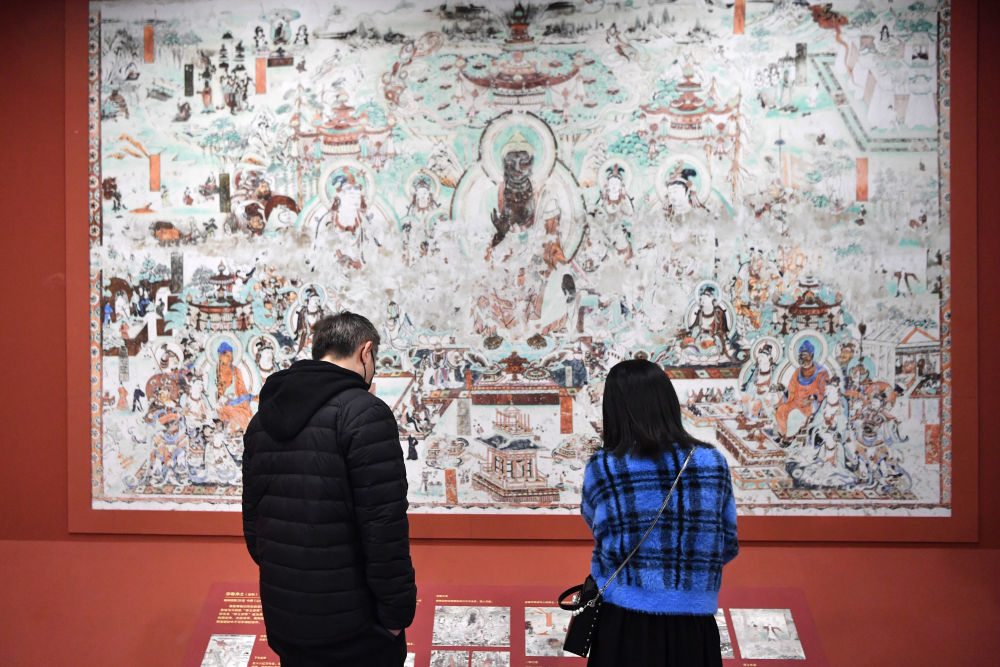4月5日(ri),觀眾在敦煌研究院蘭州分(fen)院敦煌藝術(shu)館參觀。新華社記者 陳斌 攝(she)