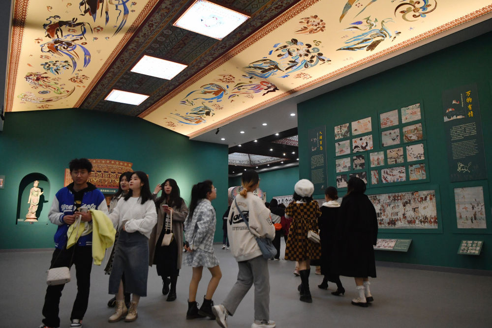4月5日,觀(guan)眾在(zai)敦煌(huang)研究(jiu)院蘭(lan)州分院敦煌(huang)藝術館參觀(guan)。新華社記者 陳斌(bin) 攝(she)