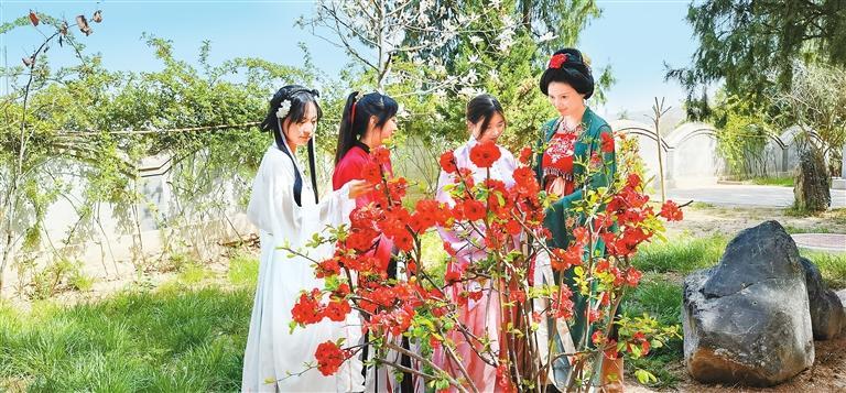 據介(jie)紹,本次活動以“啟·百花之(zhi)春、賞·漢服之(zhi)美、禮(li)·花神之(zhi)祀、觀·非遺之(zhi)趣”四大主(zhu)題貫穿始終。當天13時(shi)40分許(xu),記者來到天水市玉(yu)(yu)泉(quan)觀大景區時(shi)遠遠看到,從玉(yu)(yu)泉(quan)觀“牌坊”自下拾階而上的(de)地方,到處都(dou)是“同(tong)袍”們(men)飄(piao)逸灑脫、仙味十足(zu)的(de)身影。她們(men)三五一(yi)群躑躅前行,即便互不相識,此(ci)刻只(zhi)要(yao)相視一(yi)笑,也(ye)能心(xin)領神會。身著漢服置(zhi)身千年古觀,瞬間,古樹紅(hong)墻旁、古建(jian)玉(yu)(yu)泉(quan)邊頓生穿越(yue)之(zhi)感,渾(hun)然一(yi)體(ti)。
