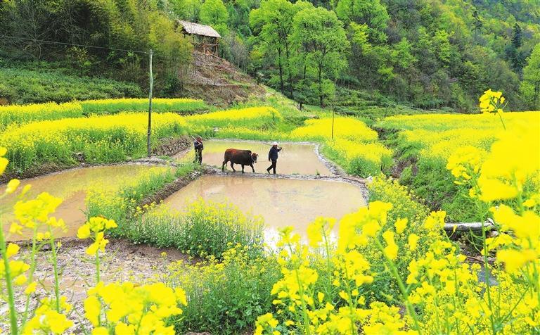 康縣陽(yang)壩鎮前山村(cun)村(cun)民正(zheng)在翻耕(geng)水田,準(zhun)備培(pei)育水稻秧苗。新(xin)甘(gan)肅·甘(gan)肅日報通(tong)訊員 黃培(pei)軍