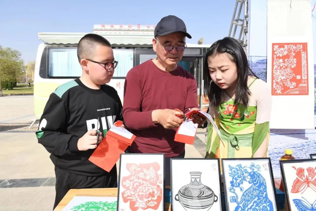 市級非(fei)遺保(bao)護傳(chuan)承(cheng)項目靖遠剪(jian)紙(zhi)傳(chuan)承(cheng)人(ren)王世(shi)義正在(zai)教小學生(sheng)剪(jian)紙(zhi)。喬麗霞 攝