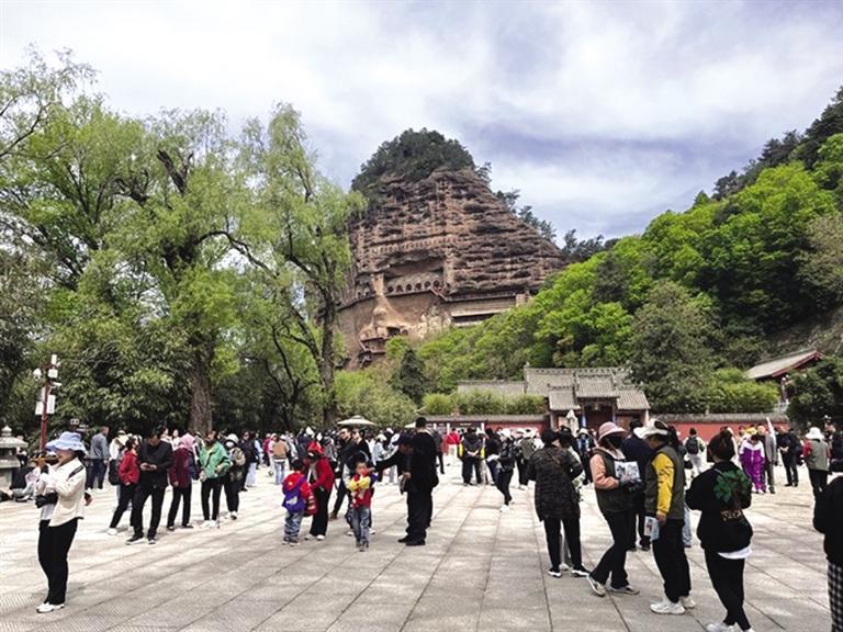 中國甘肅網5月5日訊 據蘭州晚報報道(記者 哈麗娜 攝)天水市“五一”假期旅游熱度持續攀升,旅游市場迎來全年第一波高峰。據統計,4月29日至5月3日,天水市共接待游客679.09萬人次,實現旅游綜合收入40.99億元。與2019年相比,分別增長16.9%和11.8%,創歷史新高。