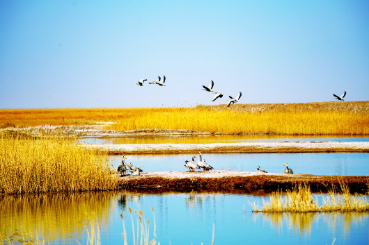 蘇干(gan)湖(hu)濕地候鳥翻飛。高宏(hong)善(shan) 陳玉(yu)明 攝(she)