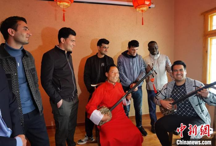 圖為5月(yue)9日,外籍游客體驗三弦伴奏的“涼州賢孝”。 戴文昌 攝