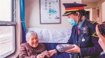 7505/7506次(ci)列車長在途中為(wei)老年旅客辦理現金補票(piao)業務。強 科 攝