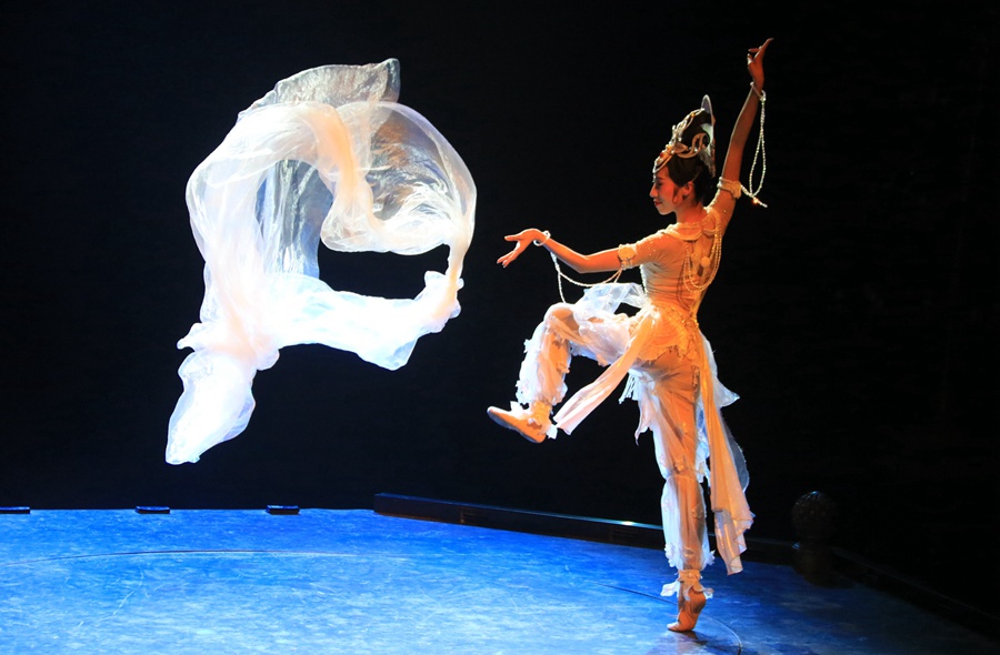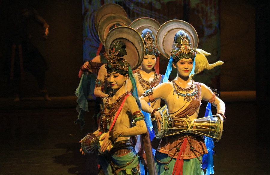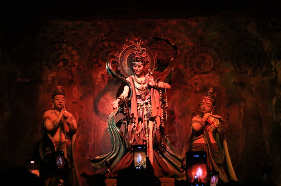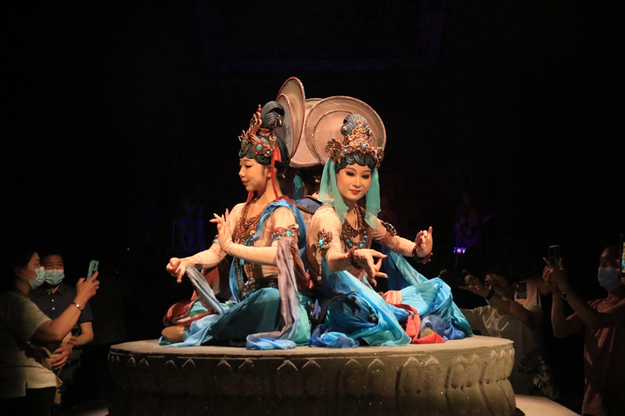 大型洞窟式沉浸體(ti)驗劇(ju)《樂動(dong)敦煌》演出(chu)現(xian)場(chang)。張曉亮攝