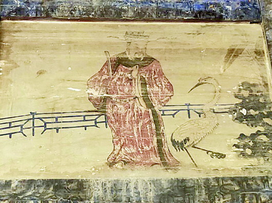 戲樓(lou)內二(er)簾(lian)額板(ban)和梁柱上較好地保存了(le)許(xu)多清(qing)代彩畫(hua),其中以(yi)墨書“太古元音”和彩畫(hua)“天官賜福圖”最(zui)為精(jing)彩。