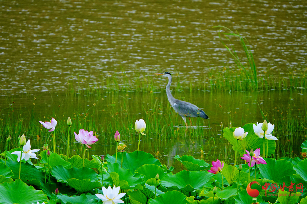 “灼灼荷(he)花(hua)(hua)瑞(rui),亭亭出水中(zhong)。”隨著荷(he)花(hua)(hua)的(de)盛(sheng)開,荷(he)塘(tang)里(li)的(de)蜜蜂、蒼鷺(lu)、小鳥也活躍起來,它(ta)們(men)或(huo)在(zai)花(hua)(hua)間起舞,或(huo)佇(zhu)立花(hua)(hua)蕾之(zhi)上,在(zai)滿塘(tang)荷(he)花(hua)(hua)的(de)映襯下,呈現出一幅美麗的(de)生態畫卷,成為夏日一道別樣的(de)風景線。