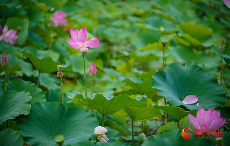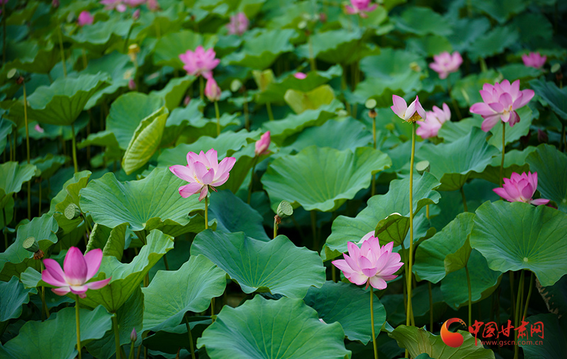 盛(sheng)夏時節,甘肅(su)成縣裴公湖的(de)荷(he)花(hua)爭相盛(sheng)開(kai),吸引大批(pi)游客前來觀賞,拍照打(da)卡(ka)。