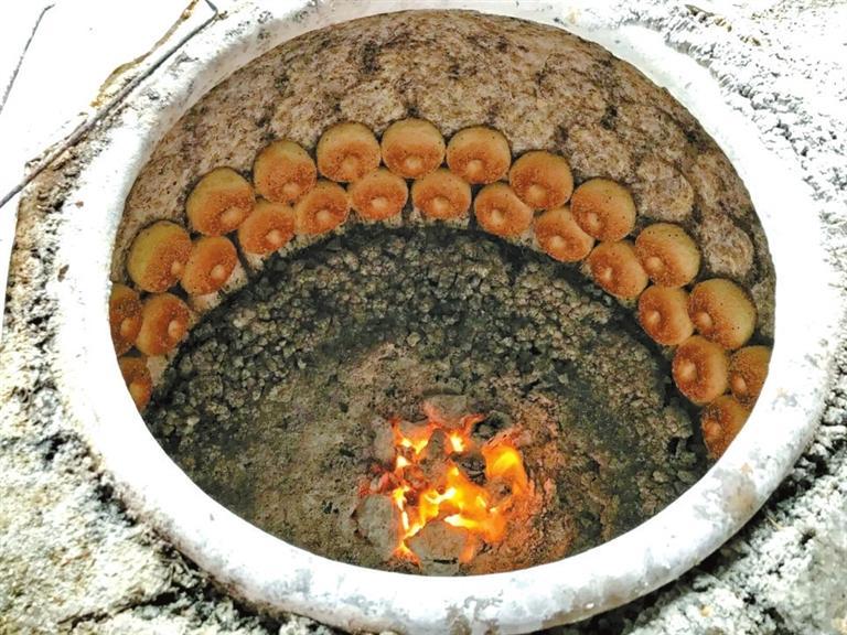 清朝(chao)志書(shu)提到在新疆,人們“以餅為(wei)常食,大徑(jing)尺余。用(yong)土(tu)塊(kuai)砌一深窟,內(nei)用(yong)細泥抹光,將窟燒紅,餅擦(ca)鹽水(shui),貼在窟內(nei),頃(qing)刻而熟。貧者惟食此,飲(yin)冷(leng)水(shui)而已。富者用(yong)糖油和面,煎烙為(wei)餅,亦(yi)有小如象棋子大者”。