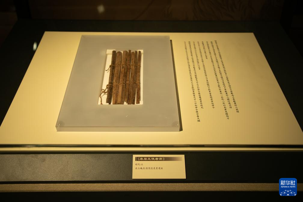 這是(shi)9月7日拍(pai)攝的(de)甘肅簡牘博物館展廳內(nei)的(de)“康居王(wang)使者冊”。新華(hua)社記(ji)者 郎兵(bing)兵(bing) 攝