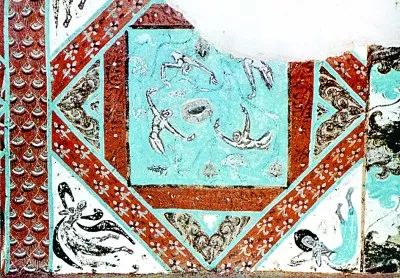 在莫高窟(ku)420窟(ku)中(zhong),還(huan)有一幅(fu)展現隋代(dai)游泳活動的畫面。圖中(zhong)兩(liang)位游泳者正在模仿爬行的動作(zuo),呈兩(liang)腿交替打(da)水、兩(liang)臂輪流(liu)劃水狀,頭部均轉向一側(ce)吸氣(qi),類似現在自由泳中(zhong)的基(ji)本動作(zuo)和(he)吸氣(qi)方式。