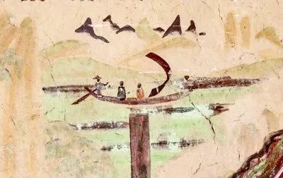 同樣是(shi)水(shui)(shui)(shui)上活(huo)動的(de)(de)(de)(de)操(cao)(cao)舟(zhou)(zhou)(zhou),在(zai)(zai)敦煌壁(bi)(bi)畫中(zhong)(zhong)也有多(duo)種表現(xian)。無論是(shi)舟(zhou)(zhou)(zhou)的(de)(de)(de)(de)形(xing)制,還是(shi)操(cao)(cao)舟(zhou)(zhou)(zhou)者的(de)(de)(de)(de)運行(xing)(xing)方式(shi),都極為形(xing)象(xiang)地(di)展現(xian)在(zai)(zai)壁(bi)(bi)畫中(zhong)(zhong)。在(zai)(zai)時代(dai)為北周的(de)(de)(de)(de)莫高窟(ku)296窟(ku)中(zhong)(zhong),有一艘(sou)正在(zai)(zai)水(shui)(shui)(shui)中(zhong)(zhong)航行(xing)(xing),船(chuan)(chuan)(chuan)體(ti)(ti)(ti)較短的(de)(de)(de)(de)獨(du)木(mu)舟(zhou)(zhou)(zhou),尖(jian)頭(tou)尖(jian)尾(wei)(wei),中(zhong)(zhong)間大、兩頭(tou)小。獨(du)木(mu)舟(zhou)(zhou)(zhou)中(zhong)(zhong)間乘坐三(san)人(ren),船(chuan)(chuan)(chuan)頭(tou)船(chuan)(chuan)(chuan)尾(wei)(wei)各有一名赤膊強健的(de)(de)(de)(de)水(shui)(shui)(shui)手在(zai)(zai)搖櫓與(yu)撐篙。這一畫面體(ti)(ti)(ti)現(xian)了人(ren)們(men)于水(shui)(shui)(shui)中(zhong)(zhong)蕩舟(zhou)(zhou)(zhou)的(de)(de)(de)(de)活(huo)動場景。而在(zai)(zai)時代(dai)為初(chu)唐(tang)的(de)(de)(de)(de)莫高窟(ku)323窟(ku)中(zhong)(zhong),壁(bi)(bi)畫中(zhong)(zhong)展現(xian)的(de)(de)(de)(de)操(cao)(cao)舟(zhou)(zhou)(zhou)形(xing)象(xiang)卻是(shi)另一番(fan)場景,畫面中(zhong)(zhong)的(de)(de)(de)(de)船(chuan)(chuan)(chuan)雖(sui)然仍是(shi)一葉(xie)扁舟(zhou)(zhou)(zhou),但舟(zhou)(zhou)(zhou)身上部設置了風(feng)(feng)帆(fan),用于劃船(chuan)(chuan)(chuan)的(de)(de)(de)(de)櫓也很清(qing)晰(xi),類似今(jin)天(tian)的(de)(de)(de)(de)搖櫓帆(fan)船(chuan)(chuan)(chuan)。舟(zhou)(zhou)(zhou)行(xing)(xing)水(shui)(shui)(shui)中(zhong)(zhong),風(feng)(feng)帆(fan)鼓浪,前有一人(ren)撐槳,整(zheng)體(ti)(ti)(ti)呈現(xian)出(chu)一幅(fu)“風(feng)(feng)帆(fan)欲(yu)起橫江(jiang)上,水(shui)(shui)(shui)影遙(yao)看海(hai)上天(tian)”的(de)(de)(de)(de)運動場景(圖(tu)①)。