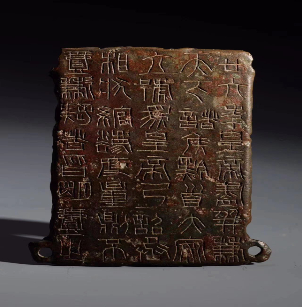 目前我國(guo)(guo)出土的(de)刻有秦始皇詔(zhao)文(wen)(wen)的(de)遺物(wu)有銅橢量(liang)、銅權等,不僅數量(liang)多而且分布也廣(guang),而把詔(zhao)文(wen)(wen)刻在銅版上的(de)詔(zhao)版形式(shi)在全國(guo)(guo)極為罕見,甘肅鎮原(yuan)縣博物(wu)館收(shou)藏的(de)就是其中(zhong)之一。