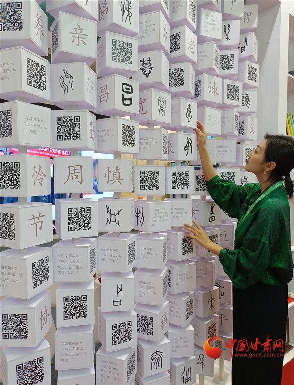 中國甘(gan)肅(su)網9月22日訊(西北角·中(zhong)國甘肅網記者 宋芳(fang)科 馮睿棟)中(zhong)國文(wen)(wen)(wen)字(zi),東(dong)方表達(da)。漢字(zi)是我(wo)們的文(wen)(wen)(wen)化符號,從甲骨文(wen)(wen)(wen)到(dao)金文(wen)(wen)(wen)到(dao)篆書、楷書,一步步走來(lai)見證著(zhu)中(zhong)華(hua)的文(wen)(wen)(wen)明文(wen)(wen)(wen)脈。山東(dong)作為孔孟之(zhi)(zhi)鄉(xiang),禮儀之(zhi)(zhi)邦(bang),出版(ban)業亦(yi)重(zhong)視傳統文(wen)(wen)(wen)化傳承(cheng)。此次山東(dong)展團來(lai)敦煌參加第(di)十三屆中(zhong)國數字(zi)出版(ban)博覽會,帶(dai)來(lai)了《中(zhong)國人 中(zhong)國字(zi)》系列書籍和相關的文(wen)(wen)(wen)創衍(yan)生產品(pin),盡顯(xian)中(zhong)華(hua)文(wen)(wen)(wen)字(zi)之(zhi)(zhi)美,寓意之(zhi)(zhi)妙。
