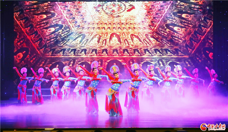 除了(le)(le)甘肅(su)省民族(zu)歌舞(wu)(wu)團(tuan)和西(xi)北民族(zu)大(da)學(xue)舞(wu)(wu)蹈學(xue)院聯袂獻上(shang)的(de)(de)(de)精彩節目外,當(dang)晚,肅(su)州區文化館(guan)還為觀(guan)眾奉(feng)獻了(le)(le)舞(wu)(wu)蹈《西(xi)域羯鼓(gu)》。據悉,羯鼓(gu)源自西(xi)域,狀似小鼓(gu),兩(liang)面(mian)(mian)蒙皮,均(jun)可擊打,既能表現快速緊(jin)急或激(ji)烈的(de)(de)(de)情緒,又可以用散淡悠長(chang)來營造靜謚(shi)雅致的(de)(de)(de)氛(fen)圍(wei)。表演中,舞(wu)(wu)者著霓(ni)裳(shang),帶搖冠、掛嚶(ying)珞,貼著金花(hua)的(de)(de)(de)衣裙飄(piao)曳、巾帶飛舞(wu)(wu),四周天花(hua)飛落,如夢(meng)如幻。該節目通過歡(huan)快的(de)(de)(de)音(yin)樂、輕快的(de)(de)(de)舞(wu)(wu)步、流暢的(de)(de)(de)隊形變換(huan)等形式,展現了(le)(le)極具特色民族(zu)舞(wu)(wu)蹈風格,也(ye)反映了(le)(le)隴(long)原兒女(nv)團(tuan)結奮(fen)進(jin)、昂揚(yang)向上(shang)的(de)(de)(de)精神面(mian)(mian)貌。