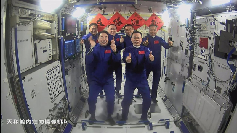 (2)三期并列:神(shen)(shen)舟17號(hao)與神(shen)(shen)舟16號(hao)兩個(ge)乘組會合,實現了(le)我國(guo)三批航(hang)天員在空間(jian)站(zhan)的首次(ci)大團圓(yuan)。