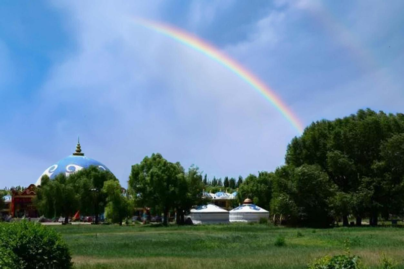 余每遙望(wang)心儀卻不能至的(de)(de)彩(cai)虹,常憶陸游(you)《秋思》詩句:“天(tian)際掛虹初斷雨,云頭(tou)翳日又(you)成陰。”秋游(you)包頭(tou)賽汗塔拉(1),卻出(chu)人(ren)意料地邂逅可(ke)望(wang)亦可(ke)即(ji)的(de)(de)彩(cai)虹。經當地友人(ren)引領乘(cheng)興疾步入彩(cai)虹落腳處,大異既往定見,歸作以(yi)志其趣。