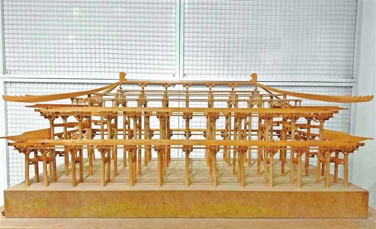 “這是兩個學生共(gong)同完成(cheng)的,是按照大明宮(gong)含元殿的木制結構圖制作的。”彭維(wei)新(xin)說。