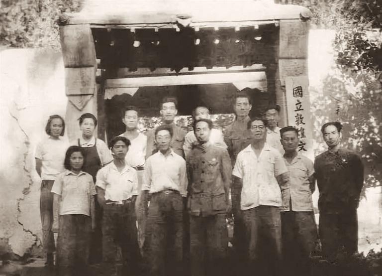 1950年,趙(zhao)望云(前排右4)、張明(ming)坦(右5)和常書鴻(右3)等人合影。