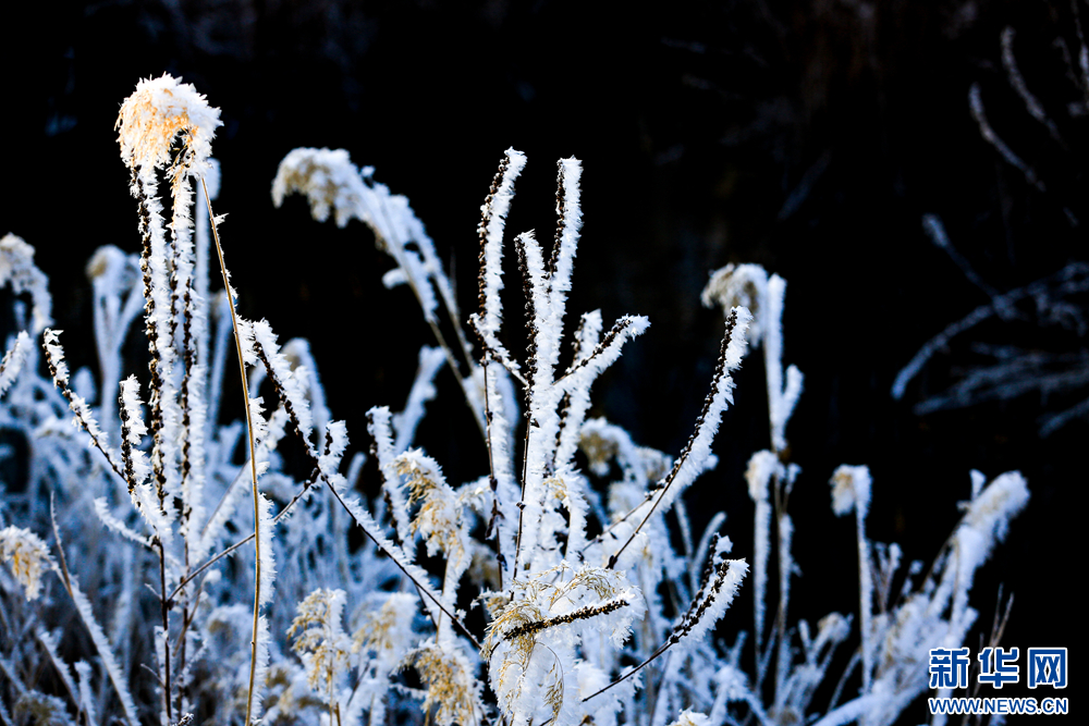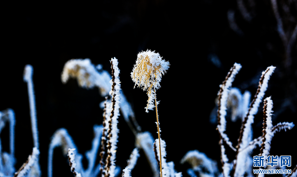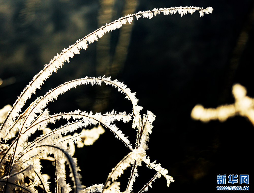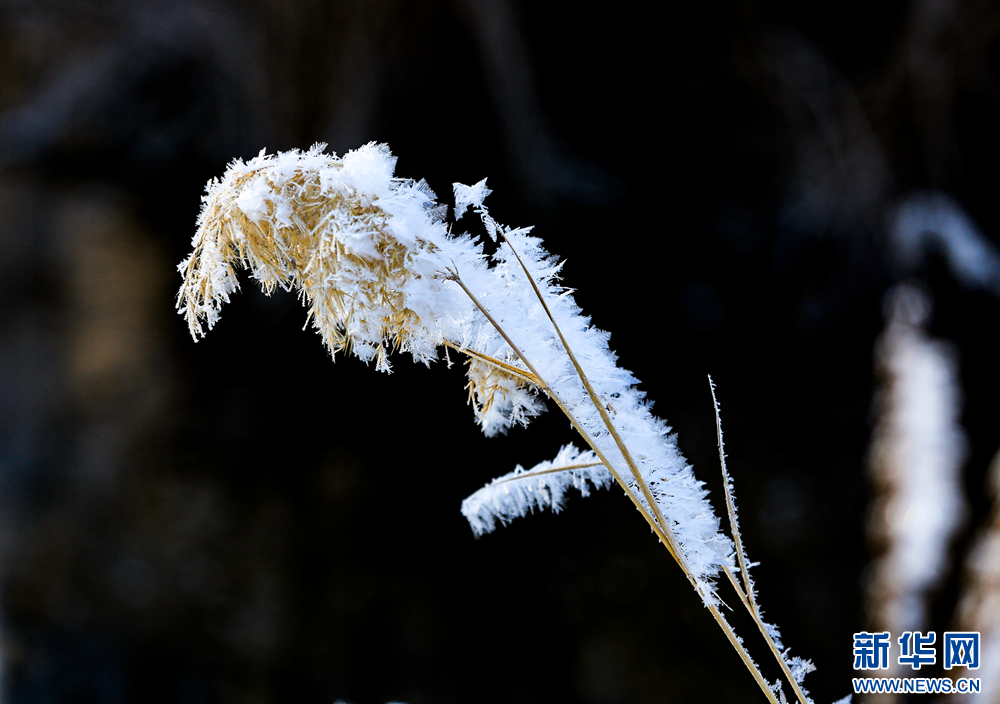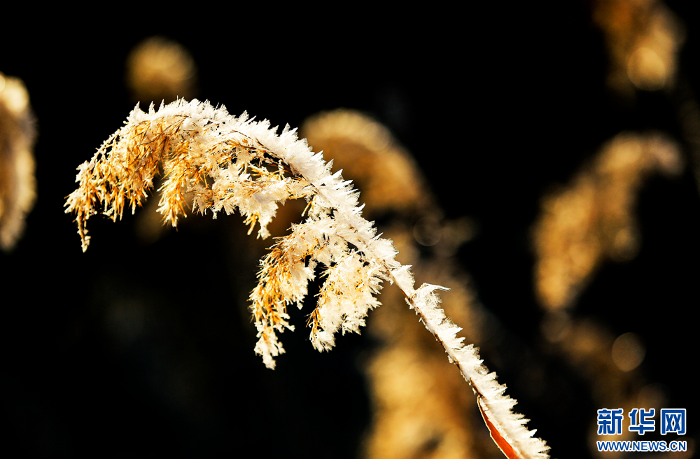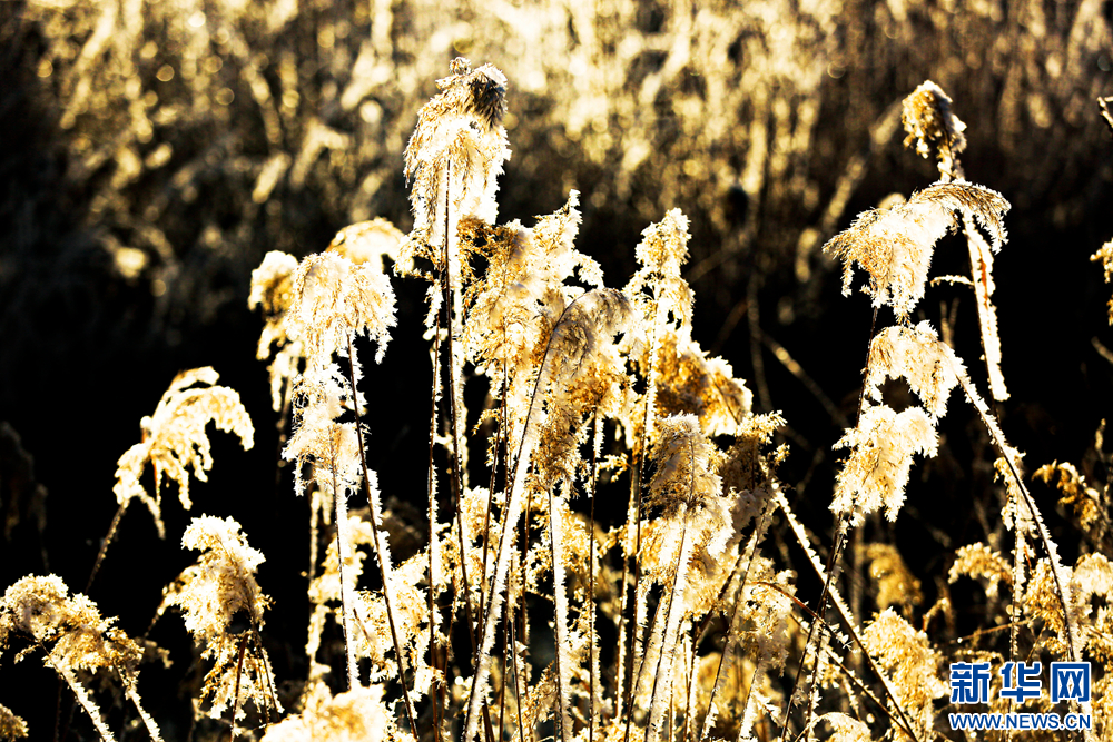 冬日里,甘肅省張掖國家濕(shi)地公園蘆葦叢中(zhong)的(de)蘆花掛滿冰花,晶瑩剔透,美不勝收。新華網發(陳禮(li) 攝)