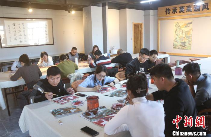 1月11日,來自云南的(de)學員在甘肅敦(dun)煌小鎮鳴沙書院研學課(ke)堂學習臨摹(mo)敦(dun)煌壁畫。張曉(xiao)亮(liang) 攝