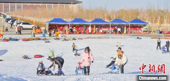 1月7日,游(you)人(ren)在敦煌文博冰雪場體驗雪地游(you)玩項(xiang)目。王斌銀 攝