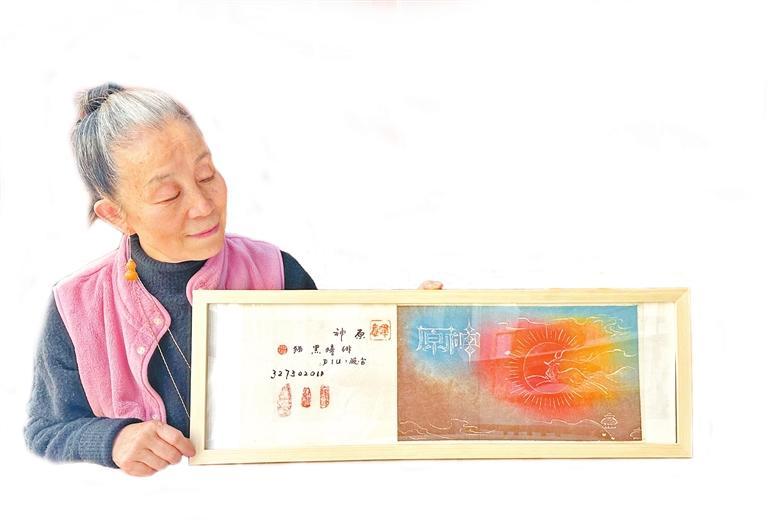 阮琦和(he)她的拓印畫(hua)作品(pin)。