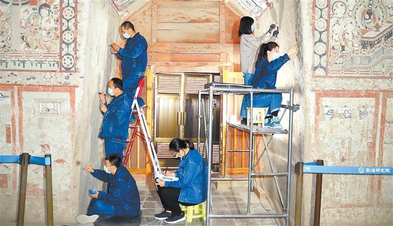 他們,扎(zha)根大漠(mo),只爭朝夕(xi),與時(shi)間“比速度”,只為搶救保護古代(dai)壁畫、石窟寺、土遺址等(deng)文化遺產;