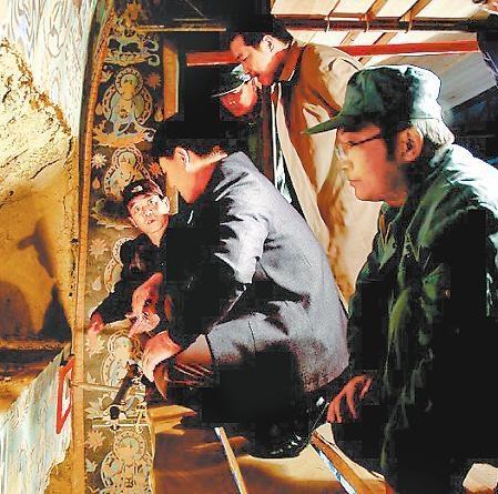 專家(jia)在(zai)莫高窟第365窟進行壁畫病害調查。