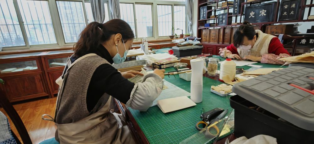 姚(yao)嘉(jia)迪(di)和同(tong)事們正在(zai)修復古籍。新華社記者 文靜 攝