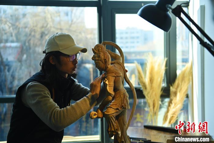 1月(yue)下(xia)旬,在甘肅蘭州技(ji)能人才服務產(chan)業園內,季茂杰進(jin)行敦煌元素的木雕創作。李亞龍 攝