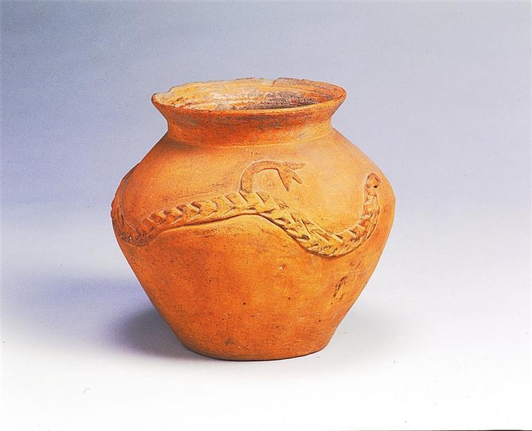 齊家文化(hua) 凸堆龍紋紅陶(tao)罐 甘肅省博(bo)物(wu)館(guan)藏(zang)