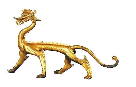 河(he)南偃師的(de)(de)(de)二里頭(tou)遺址出(chu)土了(le)夏代(dai)龍(long)(long)(long)文(wen)物,說明此(ci)時(shi)龍(long)(long)(long)已經成為身份(fen)、地位(wei)的(de)(de)(de)象(xiang)征。商代(dai)開始(shi),龍(long)(long)(long)的(de)(de)(de)突(tu)出(chu)特(te)征便是(shi)有了(le)角(jiao),并多以(yi)夔龍(long)(long)(long)紋等形(xing)象(xiang)出(chu)現(xian)(xian)(xian)在青銅器上(shang)。春秋(qiu)戰國時(shi)代(dai)是(shi)一(yi)個大變革、大發展的(de)(de)(de)時(shi)代(dai)。與(yu)政治上(shang)諸(zhu)侯爭雄、思想界百家爭鳴、陰陽學(xue)說盛行(xing)相(xiang)適(shi)應,龍(long)(long)(long)的(de)(de)(de)圖案中(zhong)出(chu)現(xian)(xian)(xian)了(le)“群(qun)龍(long)(long)(long)”和“交龍(long)(long)(long)”形(xing)象(xiang)。如甘(gan)肅省博物館(guan)收藏的(de)(de)(de)戰國盤龍(long)(long)(long)紋金飾(shi)(shi)片,兩條龍(long)(long)(long)交叉盤繞,龍(long)(long)(long)首一(yi)側飾(shi)(shi)兩條小龍(long)(long)(long),龍(long)(long)(long)尾一(yi)側飾(shi)(shi)一(yi)對(dui)(dui)(dui)小虎,作咬噬龍(long)(long)(long)尾狀,龍(long)(long)(long)身上(shang)飾(shi)(shi)聯珠(zhu)紋。隨(sui)著華(hua)夏大地結束戰亂,走向一(yi)統,秦漢時(shi)代(dai)的(de)(de)(de)龍(long)(long)(long)出(chu)現(xian)(xian)(xian)相(xiang)對(dui)(dui)(dui)規(gui)范和定型的(de)(de)(de)趨勢,并出(chu)現(xian)(xian)(xian)了(le)背上(shang)長(chang)翅膀的(de)(de)(de)龍(long)(long)(long)。魏晉南北朝時(shi)期(qi)龍(long)(long)(long)形(xing)象(xiang)對(dui)(dui)(dui)內融合各(ge)少數民族文(wen)化(hua),對(dui)(dui)(dui)外融合佛教文(wen)化(hua),流(liu)行(xing)的(de)(de)(de)龍(long)(long)(long)紋頭(tou)部(bu)扁長(chang),角(jiao)似鹿(lu)角(jiao),發鬣后披,挺胸奮肢,呈現(xian)(xian)(xian)出(chu)矯健奔放、線條流(liu)暢、氣韻(yun)生動的(de)(de)(de)特(te)點(dian)。