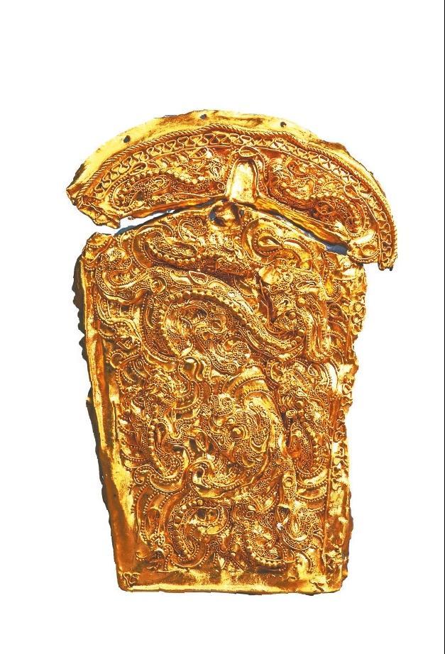東漢 金掐絲焊(han)珠蟠螭(chi)紋帶扣 天水市博(bo)物館藏