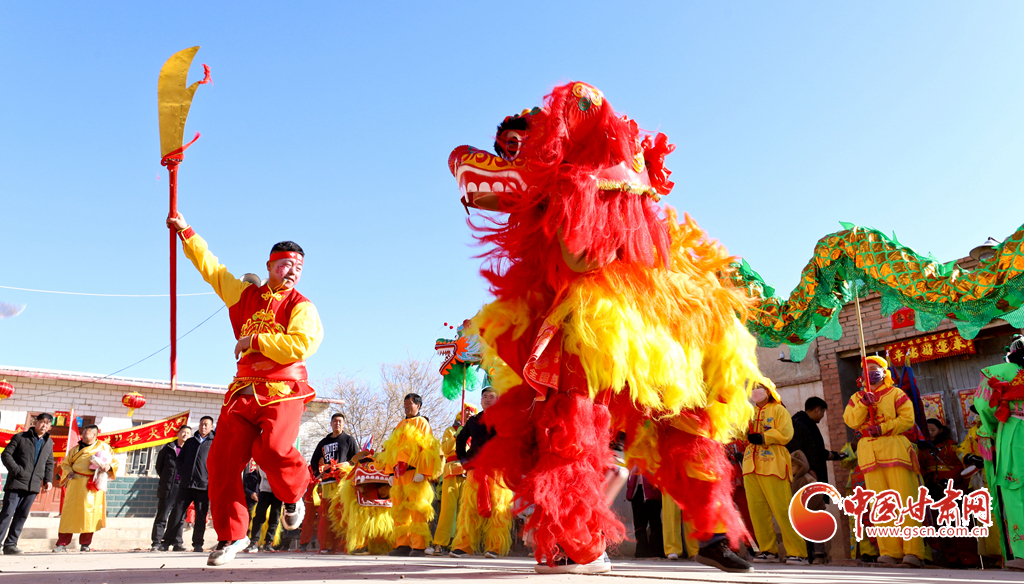 甘(gan)州(zhou)區烏江鎮平原村(cun)“萬家和美”社火(huo)隊隊員們走(zou)街串巷到村(cun)民家中拜大年(nian)。 通訊員 王(wang)將(jiang) 攝