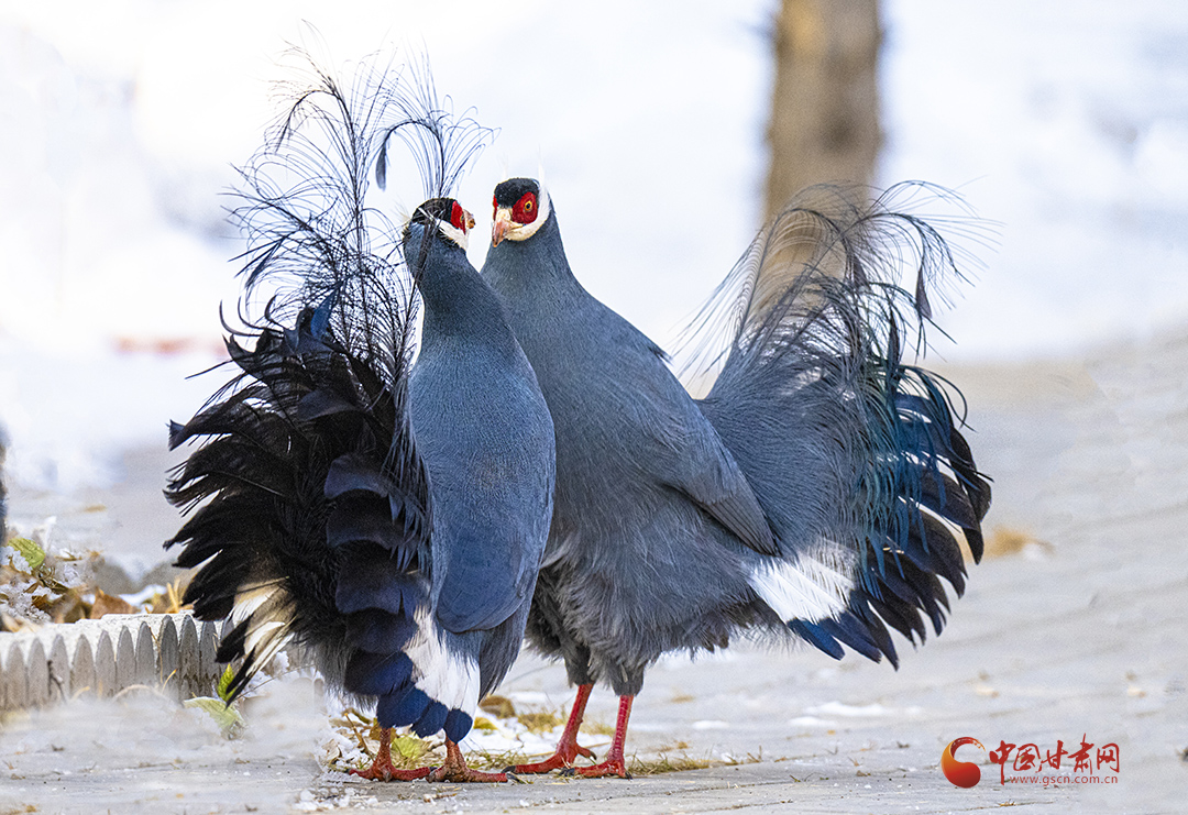 冬日里,藍馬雞(ji)成群飛(fei)落山(shan)腳覓(mi)食,藍羽丹頂行走在雪地(di)格(ge)外(wai)搶(qiang)眼。覓(mi)食時,藍馬雞(ji)常用(yong)爪刨(bao)(bao)挖(wa)林中空地(di)苔蘚(xian)和林緣草地(di),尋找掉落的云(yun)杉種子,刨(bao)(bao)食的過程會使土(tu)壤裸露出(chu)來,便于云(yun)杉種子生根發(fa)芽,促(cu)進云(yun)杉林天然更(geng)新(xin)。