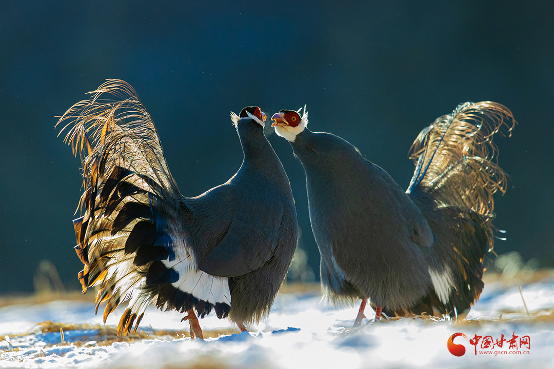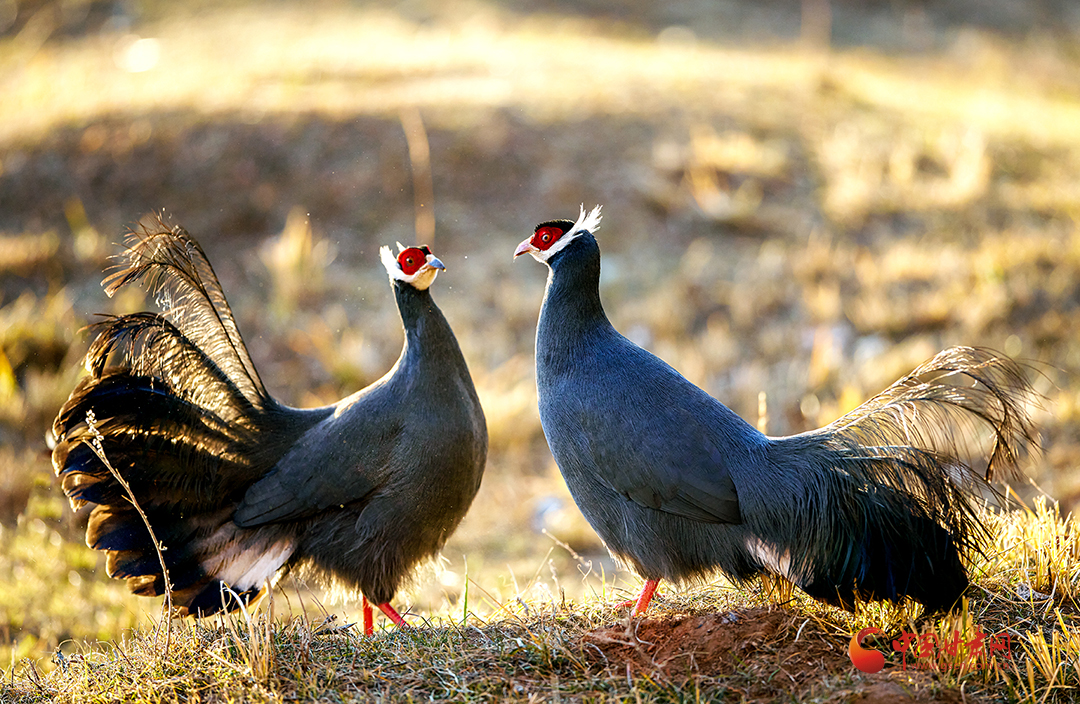 近(jin)日,祁連山國家(jia)公園甘肅省管理局張掖分局工作(zuo)人員拍攝到國家(jia)二級保護野生動物藍馬雞(ji)覓食嬉戲場景。