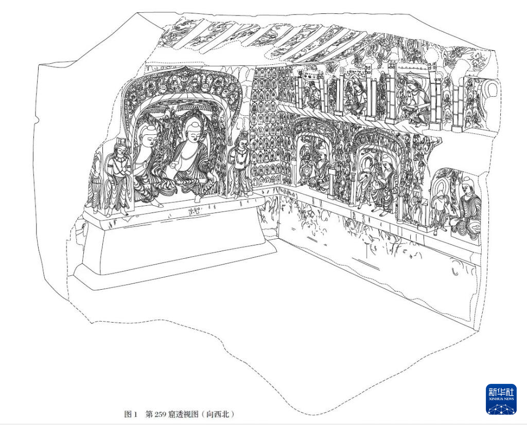 《莫高(gao)窟(ku)第256、257、259 窟(ku)考古報(bao)告》中第259窟(ku)透(tou)視圖(tu)。敦(dun)煌研究院(yuan)供圖(tu)