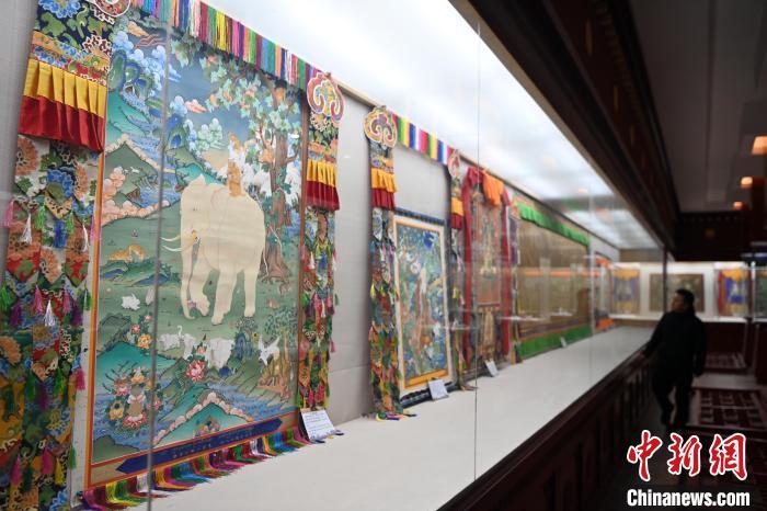 圖(tu)為游(you)客(ke)在唐(tang)卡小鎮一展(zhan)(zhan)廳內參觀展(zhan)(zhan)出的唐(tang)卡作(zuo)品。九美旦增(zeng) 攝