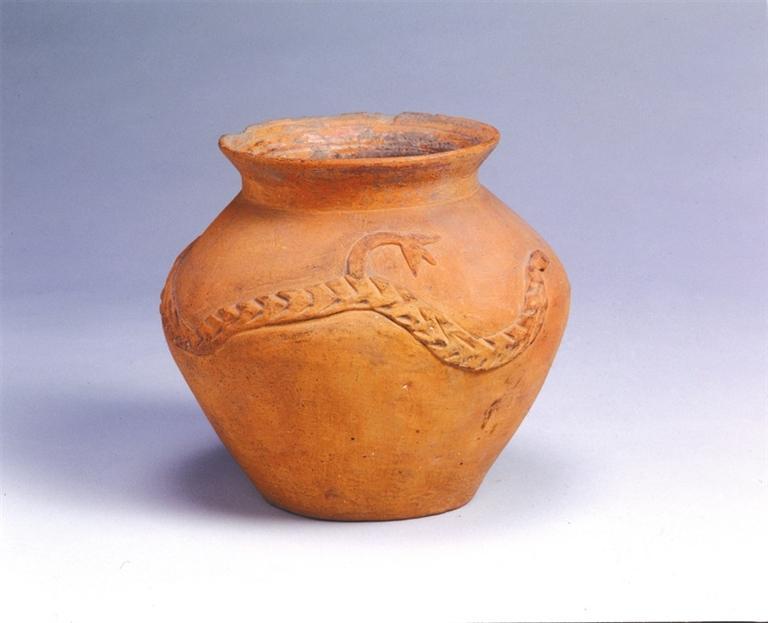 這條龍,是采用凸堆手法雕塑于一(yi)件(jian)無耳(er)、束頸紅陶罐之上(shang),它出(chu)土(tu)于臨(lin)夏廣河縣齊家(jia)坪遺址。別看它貌不驚(jing)人,和眾多同時期出(chu)土(tu)的陶罐也無二致,但它卻是一(yi)件(jian)國家(jia)一(yi)級文物(wu)。