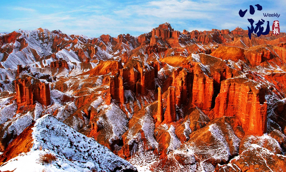 雪后,赤紅色的丘陵充滿陽剛之美,白(bai)雪宛如(ru)(ru)輕紗浸在丹霞(xia)山上,顯得格外艷麗(li)多(duo)彩、如(ru)(ru)夢如(ru)(ru)幻。