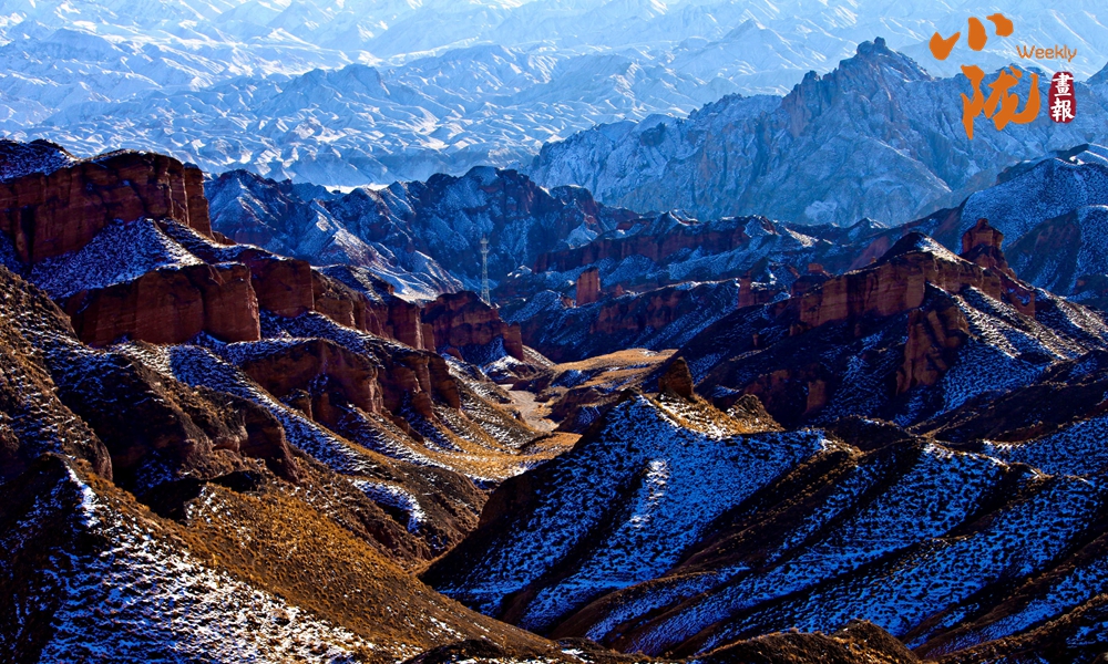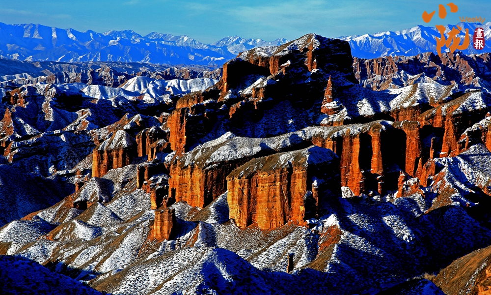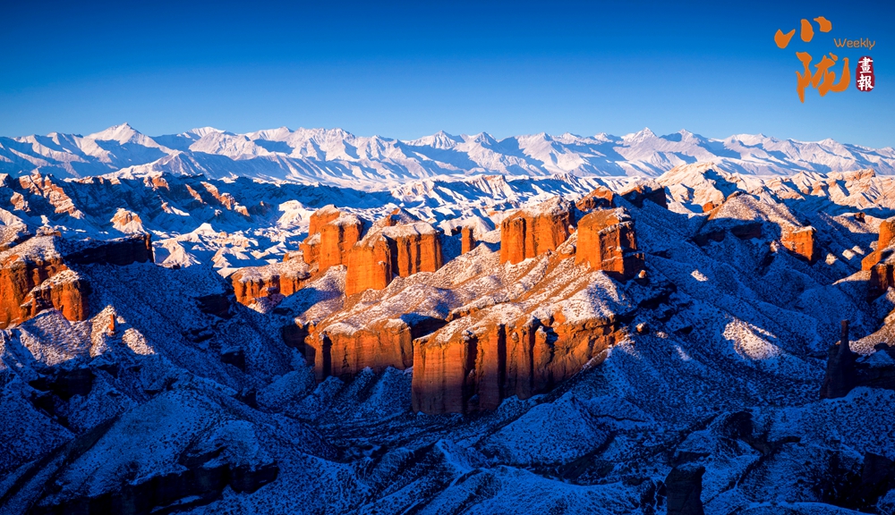 到了這里,色(se)彩是(shi)讓人無法忘懷的記憶。大西(xi)北湛藍(lan)的晴空下(xia),被白色(se)覆蓋的紅色(se)山體,變(bian)幻出(chu)多(duo)彩的顏色(se),氣勢磅礴。