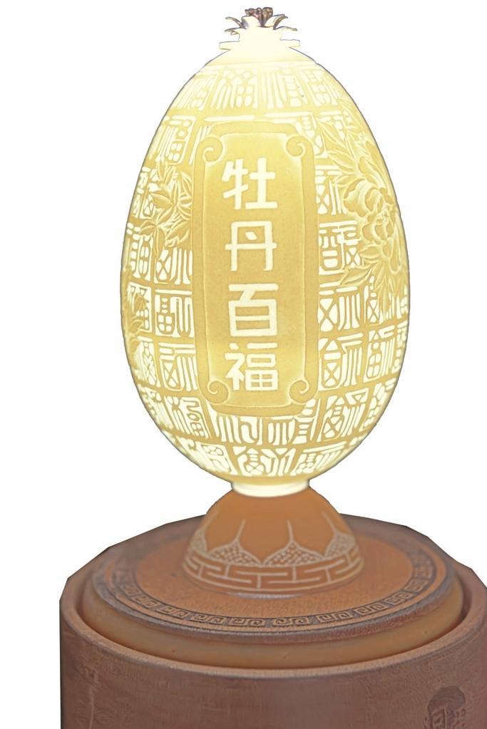 鏤空雕刻,燈(deng)光下(xia),幾何圖(tu)形凸(tu)顯的美,猶如(ru)一朵異樣的花,盛開在他的心田。他感動于小小蛋殼帶(dai)給他的驚喜和內心的悸(ji)動,至今還保存著那件處女(nv)作的照片。
